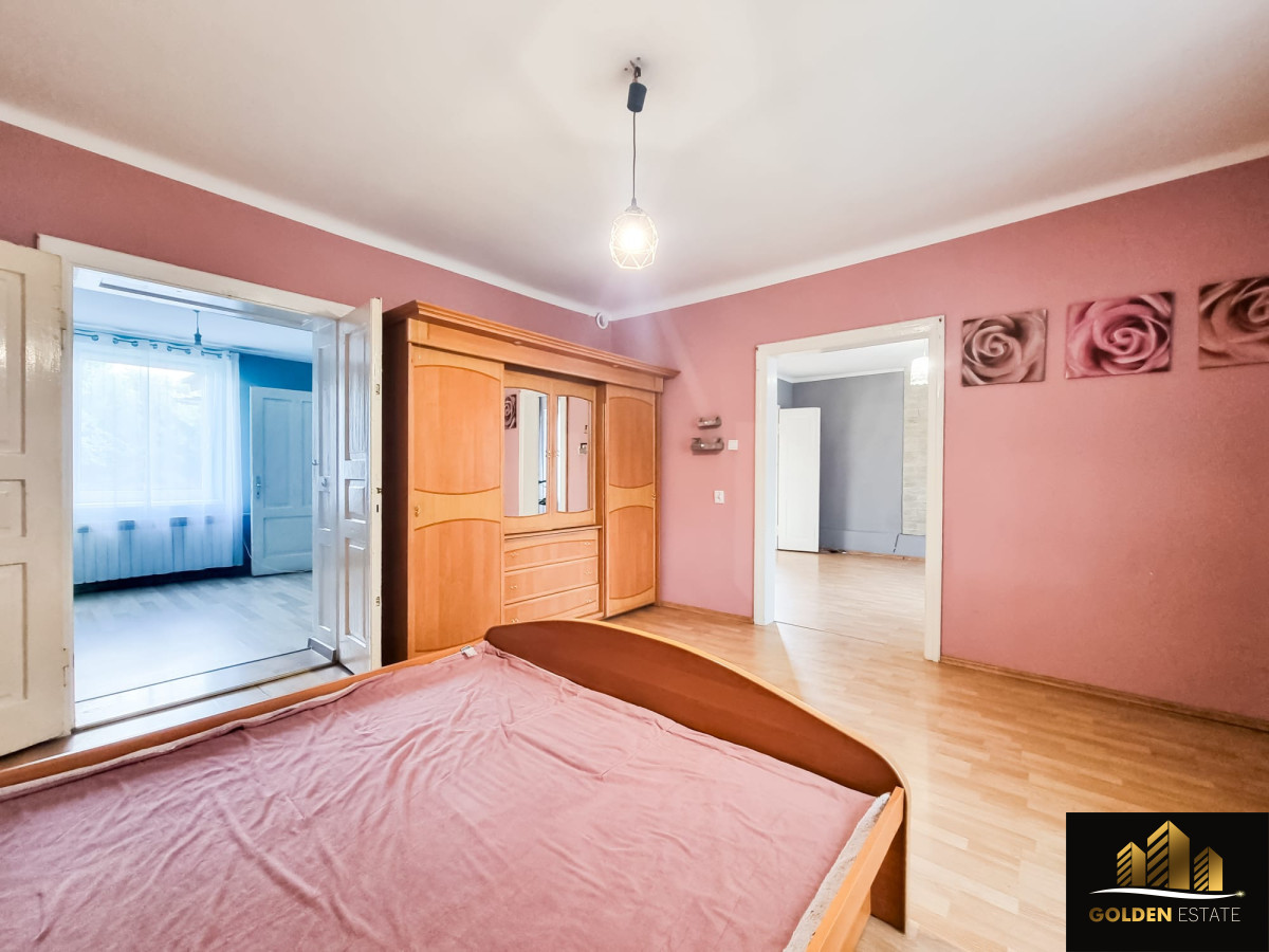 Dom ma powierzchnie ok. 100 m² i postawiony jest na działce o powierzchni 945 m². Nieruchomość obejmuje również murowany garaż oraz budynek gospodarczy - przestrzeń gotową na realizację najróżniejszych pomysłów. Wnętrze domu składa się z trzech niezależnych pokoi, a z jednego z nich jest wyjście na taras, osobnej kuchni oraz łazienki.