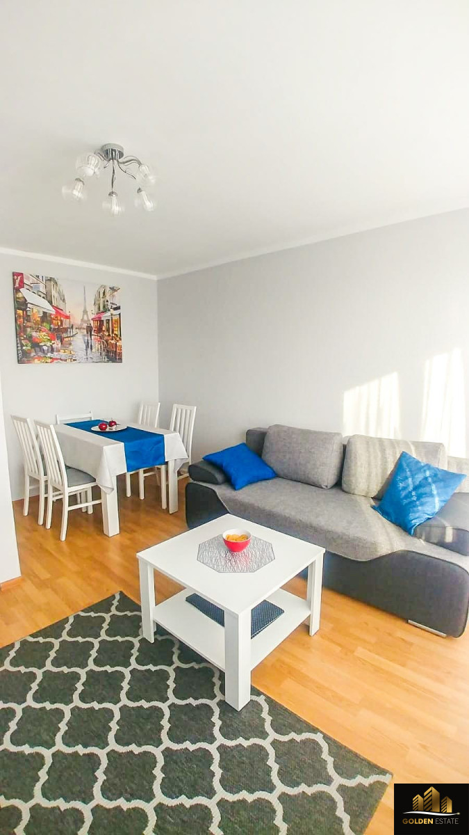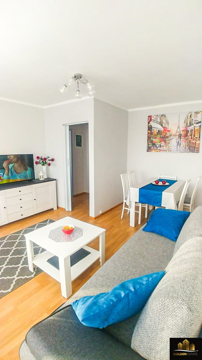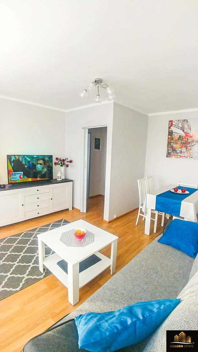 Mieszkanie jest w pełni umeblowane i wyposażone w niezbędne sprzęty AGD, gotowe do zamieszkania.