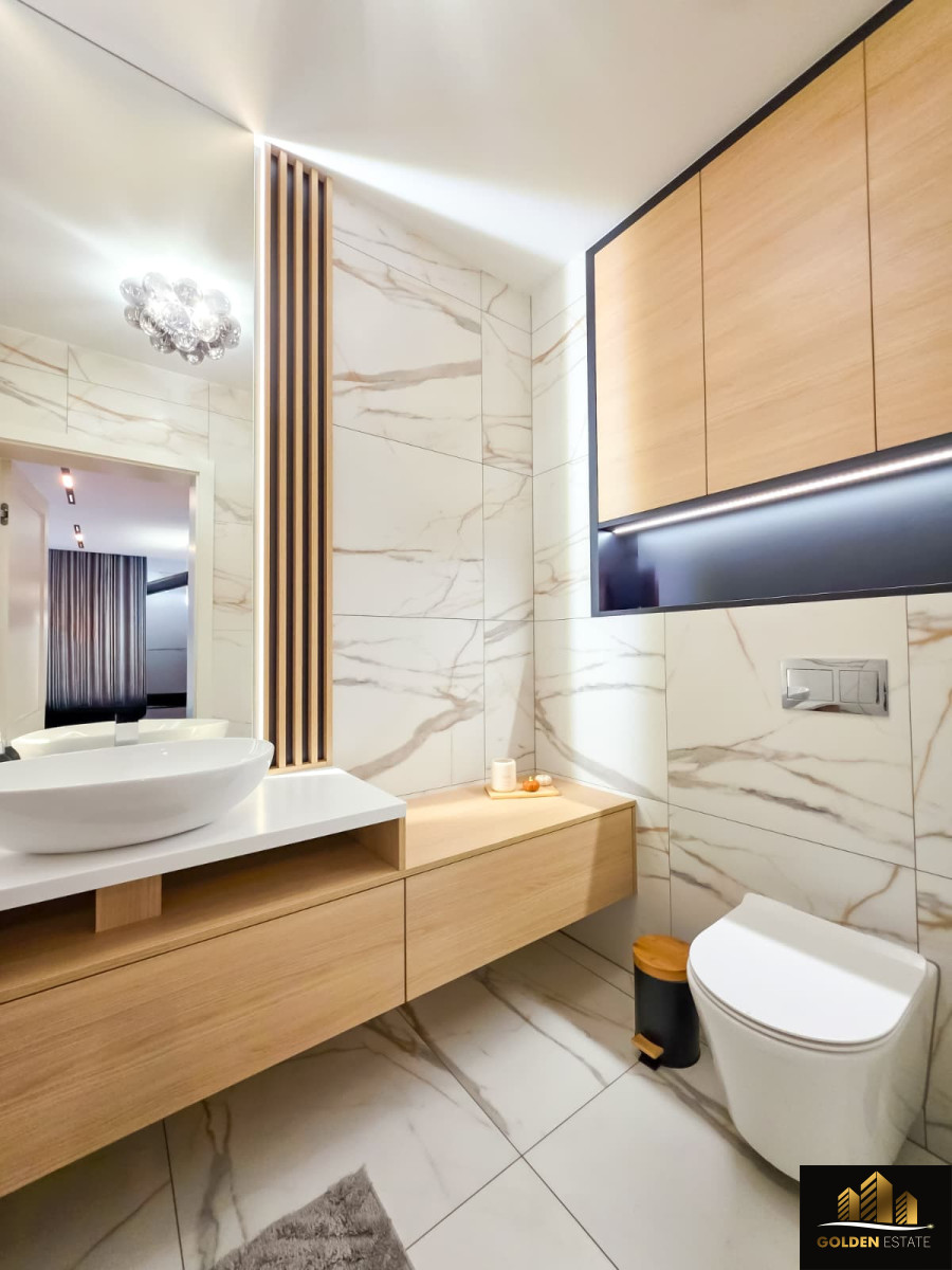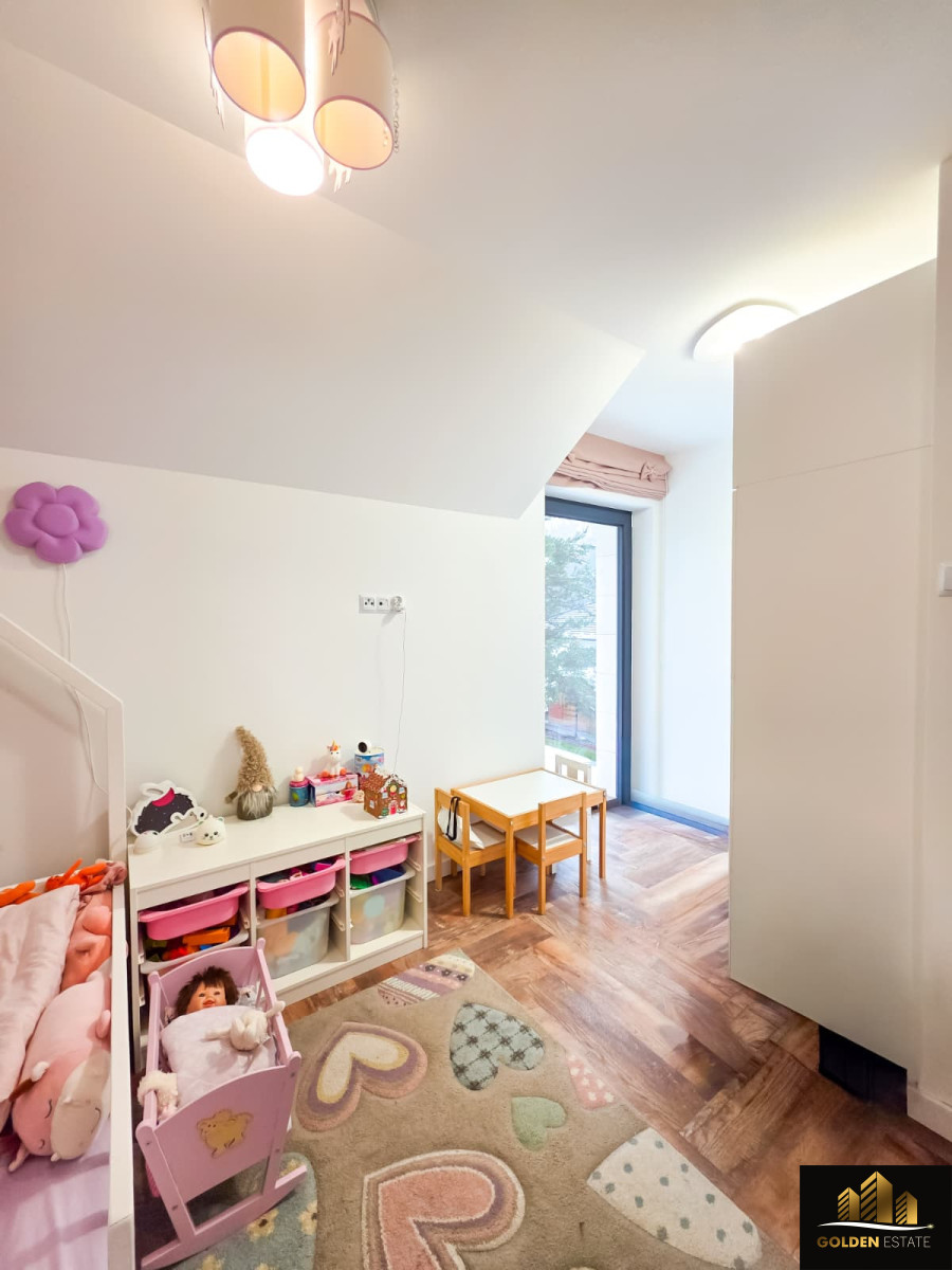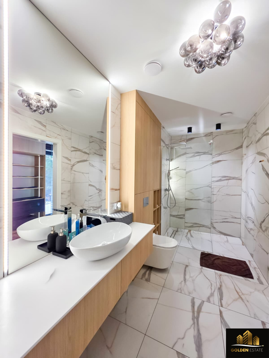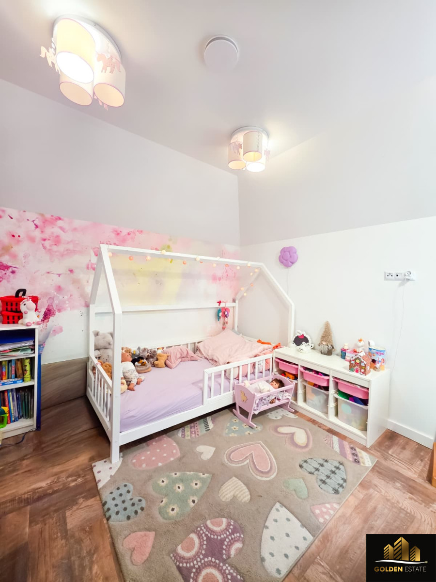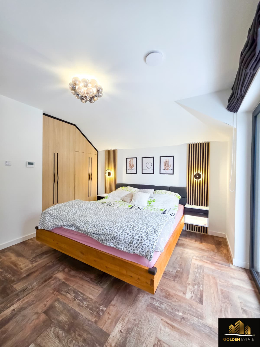 - Piętro: duża sypialnia master bedroom z prywatną łazienką oraz garderobą, dwa dodatkowe pokoje, druga łazienka obsługująca te pokoje.